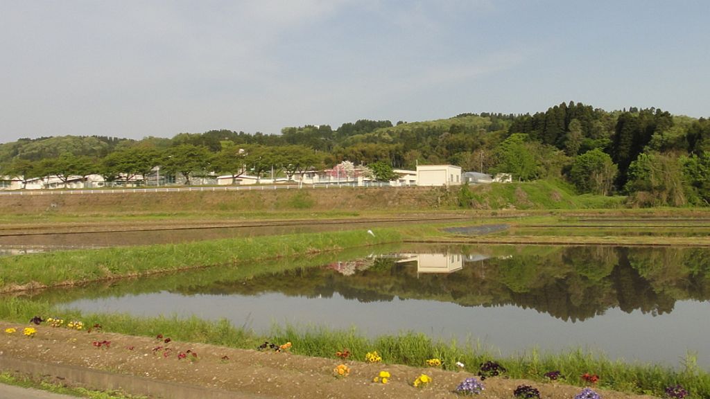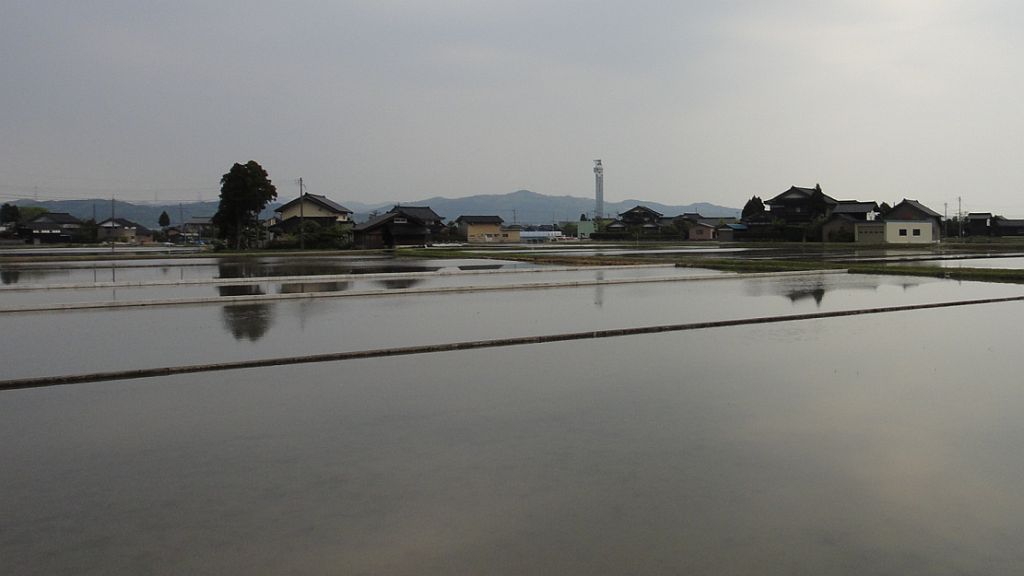 R471へ移動 水の張られた田んぼに空が映って夢の中を走ってる気分です。冬は雪・夏は猛暑に悩まされる富山が最も美しく過ごしやすい季節です。