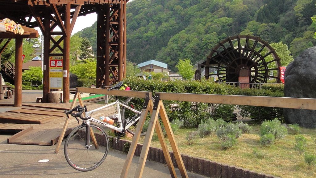 庄川水記念公園井波福野小矢部高岡 105km (2014.5.3) 朝6時に出発、昨日まで考えてた行程は2年前の白川村行きとほぼ同じ道のりで相倉から南下せず戻るはずであったが、昼頃に雨の予報で予定変更。そう言えばR359の富山砺波間は自転車で走ってないなと、R359から砺波経由で木工まつり開催中の庄川水記念公園へ、ここまでが向かい風とアップダウン。バイクスタンド設置のサイクルステーションがありがたい。瓜破の清水で水補給、ゴクゴク飲んでいると「煮沸してから飲んでください」の看板、まイイヤ。井波市内もお祭りで山車が出ていた。福野駅前には昨晩まで開催の夜高祭の山車。小矢部まで続く自転車道があったので入ってみるも「止まれ」標識だらけでストレス感じ、R471からクロスランド小矢部から石動、福岡から旧道で高岡、今年の初のまじまの十段ソフトが美味い。ふと空を見上げると南西側に真っ黒な雨雲、これはマズイ。渡船に乗るつもりだったが予定変更、いつも西への往路に使う道を東へ全速力。追い風に乗って45q超の高速であるが、うーんスキーのほうが速度感あるなー(笑)。11時前に帰宅。先週の180kmの超回復か、100q程度だとつらさは一切無し。