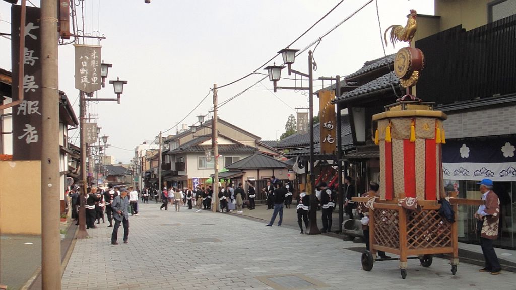 八日市通 ちょうど集合中、山車も出され今まさに始まるところでした