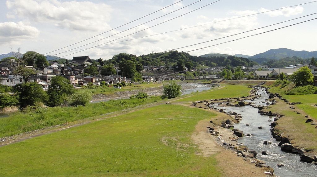 八尾 井田川の流れ、旧町の石積み、聞名寺の瓦屋根