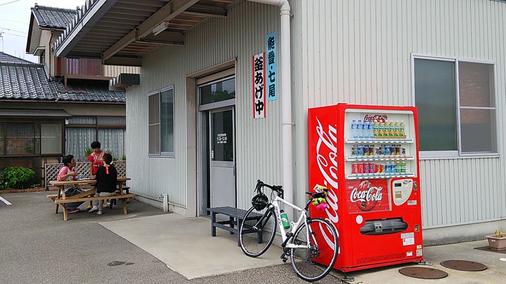 七尾往復 150km (2014.06.07) 起床時に雨雲レーダーを確認、東西どちらに行くべきか、新潟県境の降雨を予想し西に決定。出発が9時半と遅くなった。雨粒がポツリポツリと来るが所謂1mm未満の記録にならない雨。神通川右岸からR415経由で堀岡、県営渡船は待ち時間長く、あいの風プロムナードを自転車転がし歩きで渡る。開通時の混雑がウソの様に静かであった人はウォーキングの女性一人。越ノ潟の駐車場も車1台だけ。如意の渡し大橋に改名して欲しい伏木万葉大橋を渡り30q地点のポプラで休憩、オレンジジュース補給。いつも通りに海岸沿いから氷見へ、次第に向かい風となるも頑張って回す。今回は補給間隔を延ばし一気に道の駅いおりへ。途中、ウグイスの声多数、ヤブサメの声3回、ホトトギス1回、魚を運搬中のミサゴ1回。アミノバイタル服用すぐに出発。ロードバイクでR160から七尾入りするのは初めて、意外に上りがキツイ。エネルギー的には天田峠くらいの消費量かも。72q地点の山崎製麺に12時45分着。冷たいうどん+おにぎり2個で450円。麺はOK、つけ汁はうーん・・・次回は温かいメニューにしよう。とは言え有り難い安さで、高山の新井製麺所を小さくした雰囲気は好みである。地下水?もボトルに詰めさせてもらって助かった。 今日は切りよく150kmにしようと七尾市内を一本杉通ほかをポタリングして距離調整、コンビニでアイスコーヒーを補給し復路へ。北大呑あたりまで何故か向かい風、その後気持ちの良い追い風になって一気に道の駅氷見へ。糖質ゼリーで補給。1537の県営渡船は余裕で間に合いそうで28q/hほどに落として越ノ潟。今日の渡船は「こしのかた」だった。帰路は四方から射水線跡を南下、北大橋でランニング中のたかみーに手を振って体育館の冷水器。ここからは安全速度のポタリングで帰宅ジャスト4時半。7時間で150q、UpDown付きなのでまずまずの速度かも。アキレス腱に圧痛、大事に行こう。 今日はデジカメとガラケーではなくスマホ1台、結論は知った道ならデジカメとガラケーですねぇ。