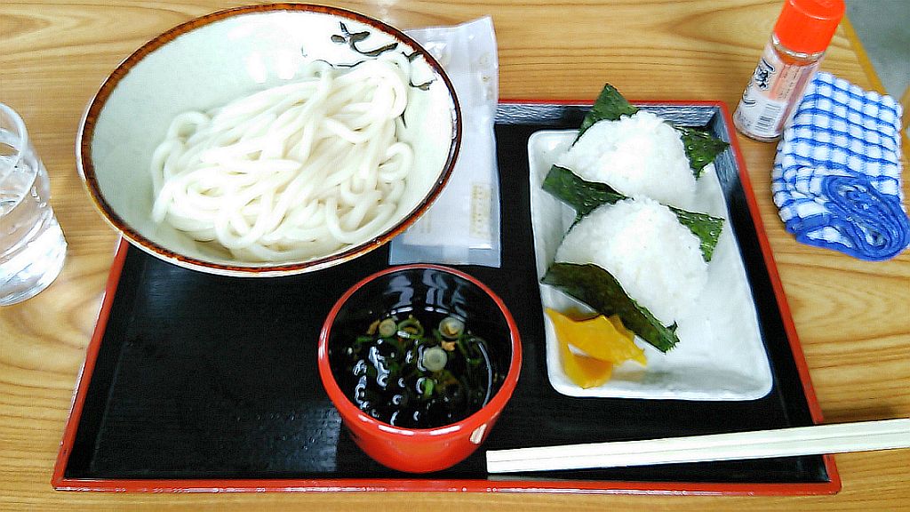 冷やしうどん+おにぎり2個 これで450円、素晴らしいCP、近所に欲しい