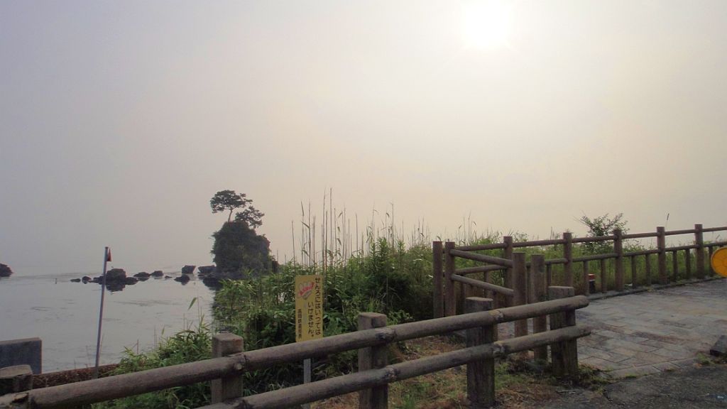 海岸線が霞んでぼやけてる