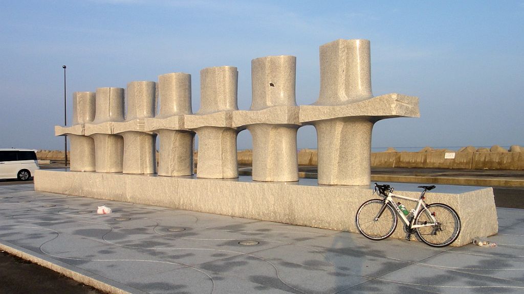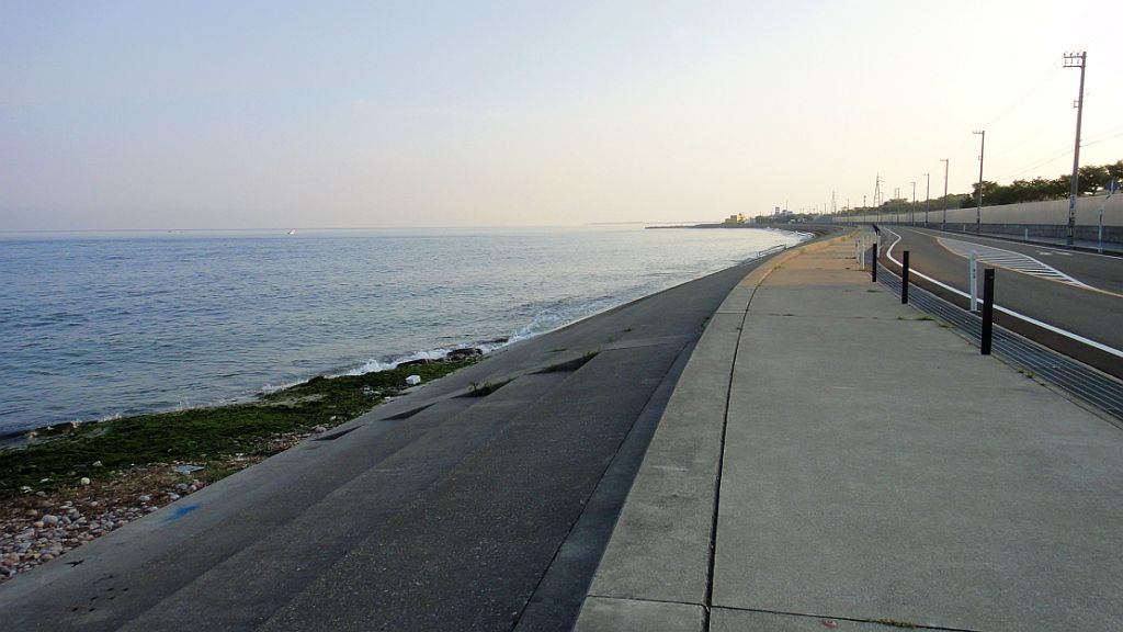 朝練魚津港往復 47km (2014.08.13) 今季3回目の平日朝練、魚津港往復47q。昨日のコースは農薬絶賛大散布中だったので海岸と土手が多い7/30とほぼ同じコースで。5時15分出発、こよみでは富山は5時7分日の出であるが太陽は山の向こう、常願寺土手の新幹線高架手前で太陽が顔を出した。県道1号滑川で農薬散布2ヶ所、カメムシ大発生とのことで仕方なし。魚津港まで30〜33q/hをキープして回す。千年の夢で補給休憩。帰路は乳酸感じてなかなか調子でず、早月川を渡ってから30q/h巡航。常願寺川を今川橋で渡ってからエネルギー切れ、27km/h程度に落として帰宅。13日なので盆休の企業が多いのか7時近くなっても車は増えなかったのは有難し。朝練3日計144qでチェーンの油が切れてきた。