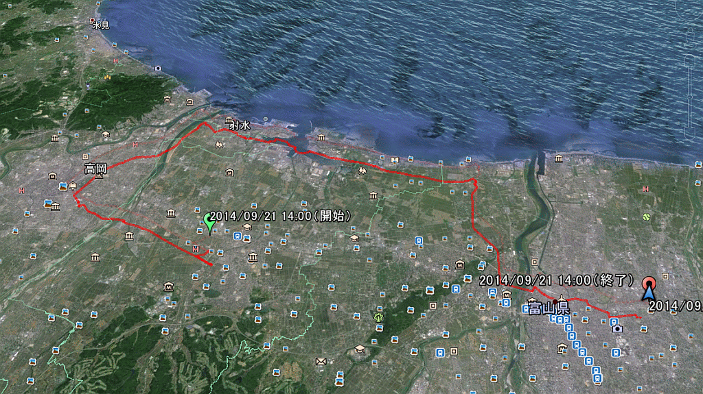 射水ポタ 42q (2014.09.21) 子守ポタ?で小杉〜大門〜高岡〜中伏木〜新湊〜四方〜富山、約42q。高岡市内で自転車向きの道路偵察にもなり、まずまずの収穫。