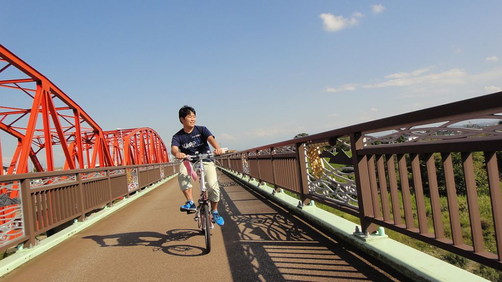 庄川を渡る 橋は赤
