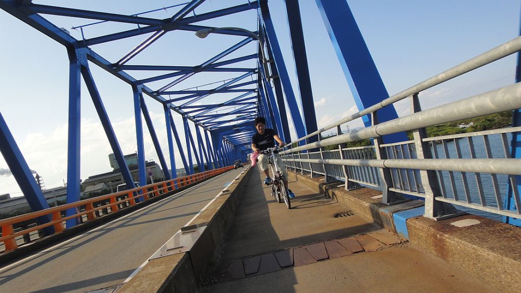 再び庄川を渡る 橋は青