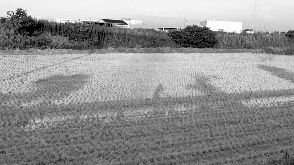 八ヶ山あたり 稲刈りが済んだ田圃に延びる影