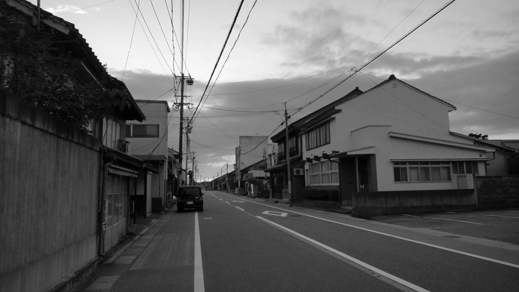 北陸道荒川地内 彼岸は夕陽が道路突き当りに落ちる ▼自転車 DAHON obi-one and DAHON Speed P8 >HOMEに戻る|>戻る |