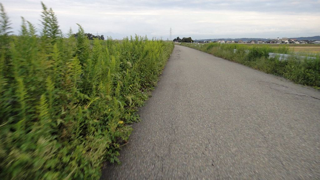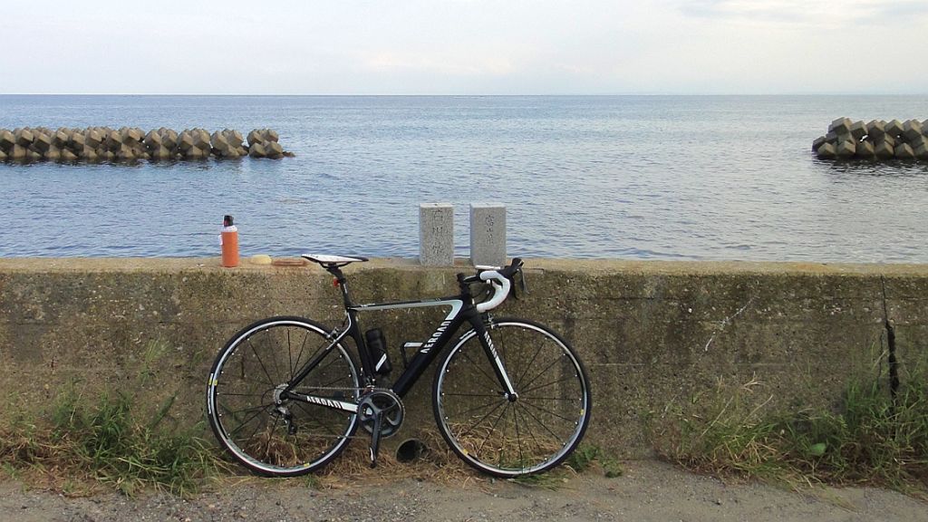 aeroadで石川県境 100q (2014.09.27) 出発が1時15分過ぎと遅くなったがトラブルなければ日没前に帰宅できるだろうと七尾を目指す。北風が強く神通川土手は進まない、エアロフレームのaeroadでも180度の向かい風はどうにもならず。R415でようやく27〜31q/hで回せる様に。1414の渡船で越ノ潟に渡れば、明日開催の海王丸マラソンの昇り旗、海王丸ロードレースではなくなったのね。如意の渡し大橋と雨晴駅前で自転車乗り2名を追い抜き、阿尾デイリーで給水休憩。 向かい風の中を出来るだけ30km/h維持で頑張ってみる。何とか県境、脇の神社で秋祭り、ここも呉西らしく獅子舞奉納。折り返しからも30km/h維持、1637の渡船には到底間に合いそうになく牧野大橋と新鍛冶川で戻ることにするも新港の森でエネルギー切れ、30q/hを維持できなくなる。片口のファミマをうっかり通過すると自販機すらなくバテバテ、寒江で自販機発見100円コーラで補給するも残り10qはヘロヘロ、腰痛が酷い。aeroadの調整はまだまだ続きそう。ポジションはもちろんディレーラーすらまだまだ。