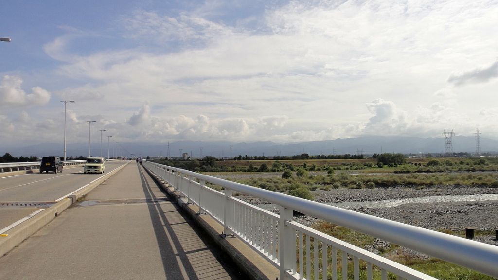 富立大橋 山は雲に隠れているがまさか雨雲に出会うとは予想だにせず