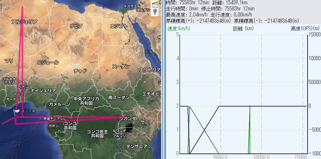 往路大暴走のロガーデータ ウガンダやアルジェリアや水深1000mまで潜ったり、aeroadは凄いバイクだ(笑)