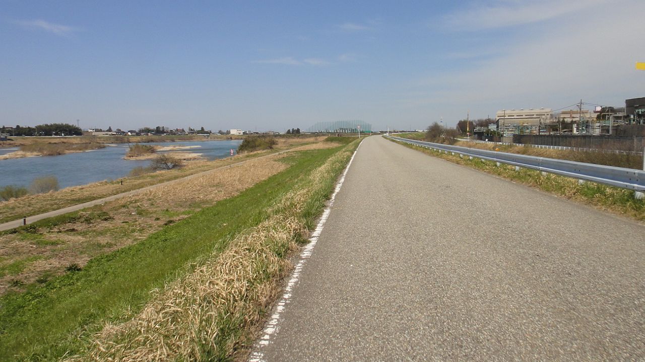 神通川土手 この時点でまだ東西迷い中