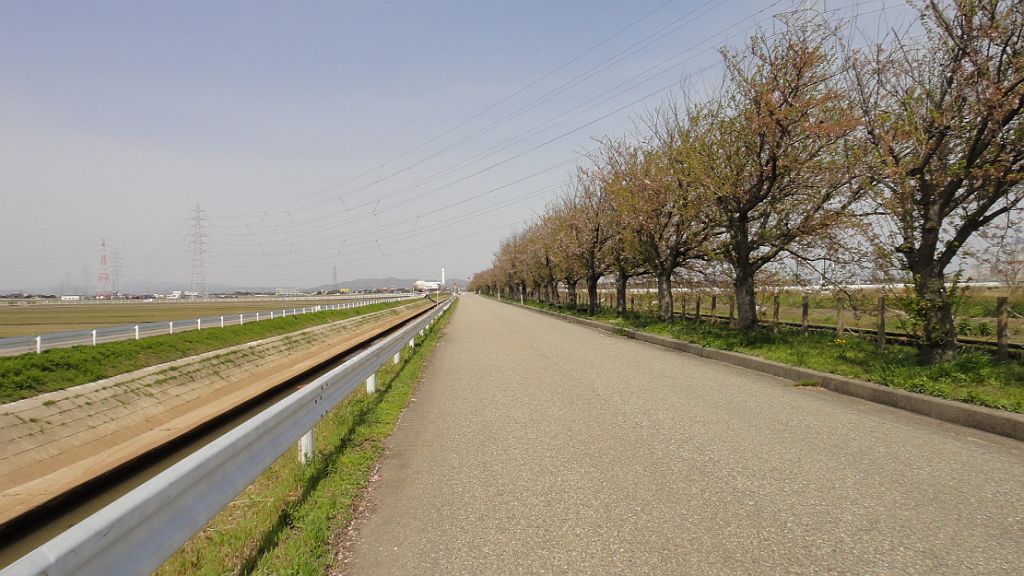 新鍛冶川 桜並木で南西の向かい風が増幅され厳しい出だしとなった。