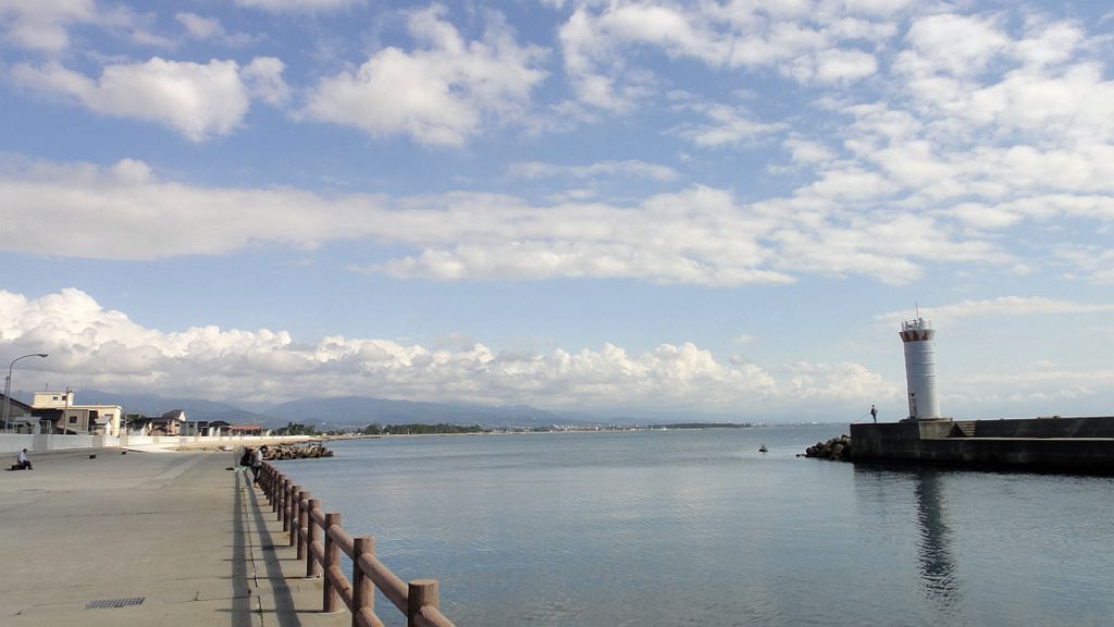 生地港東側 黒部川の向うは長い入善海岸