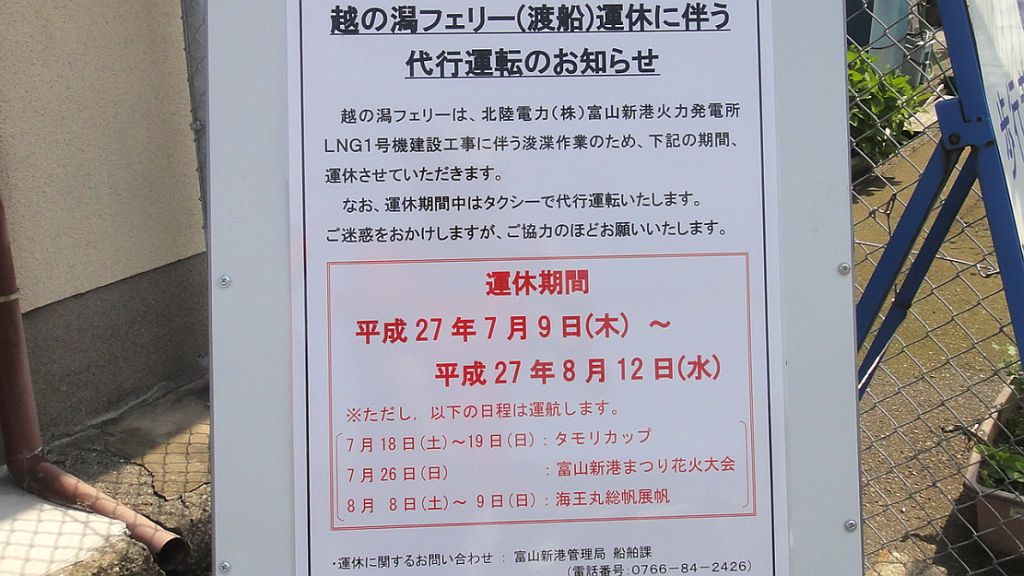 渡船運休情報 7月9日からほぼ一カ月運休とのこと、これは要注意