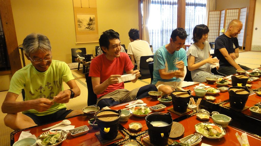 ゴール地点で久々の遠野さんと再会。立山登山マラニックでBBTの番組に映ってしまった思い出(笑)。途中リタイヤ(区間敢走)の方々もほぼゴールに来ており、独りぼっちでスタートしたのに賑やかにゴールできた。今年も民宿ゆうなぎの魚づくしとお酒を堪能、夕食中に差し入れ持って登場のhisaさんを無理矢理朝まで引き止め(笑)、宿泊の安心感でたっぷりと飲み語りまくった。