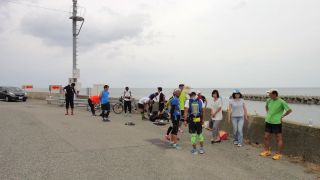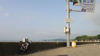 自宅5時過ぎ出発、昨夜からの雨は上がったがどんより重い空、高岡でポツリポツリとフロントガラスが濡れる。6時10分ゆうなぎ着、現地は青空も見えて太陽が眩しい。やはり自分は晴れ男(笑)。今年も水蒸気で対岸はまったく見えず。ridley組立後県境へ。昨年より40分ほど遅い6時31分にスタート。今回は終日西風で往路が追い風、風は次第に強くなり、復路は厳しい向かい風となった。休憩&補給は、県営渡船、岩瀬浜サークルK、生地の湧水とサークルK、道の駅市振(昼食)、魚の駅生地、県営渡船、阿尾ディリ―。朝日町で今年初めてニイニイゼミの声。今回は出発が遅かった分、ランナー達が先行しており、復路の生地で休んでいる時点で全員が島尾〜伏木あたりに居た模様。姿〜ゴール大泊の間で50q&30qの最後尾ランナー5名を見たが、他のランナーは既にゴールしていた。あと20〜30分くらい早くスタートしたほうが良かったか。