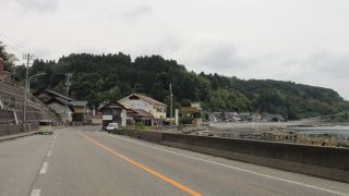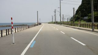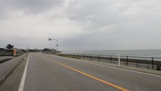 入善海岸は強い追い風、バイクが勝手に進む