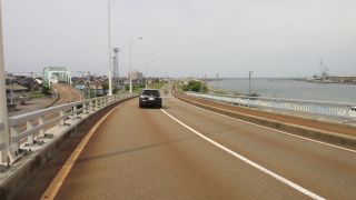 下黒部橋から入善へ、追い風が急に強くなってきた