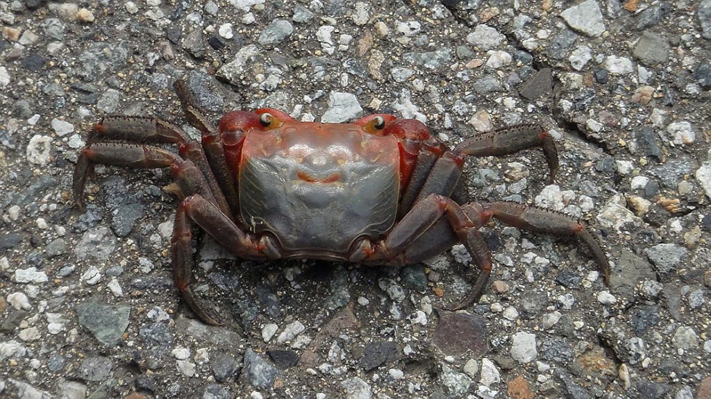 道を歩いていたカニ 足先両端で10pくらいと結構大きなカニだった