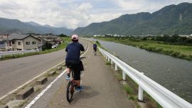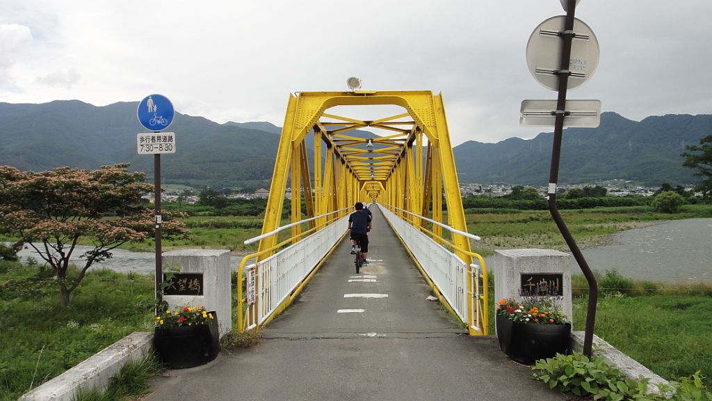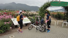 海の日連休恒例の信越旅行、今年もDAHON3台を車載して出掛けた。今回は篠ノ井駅から上田駅までしなの鉄道で輪行、上田から篠ノ井を千曲川左岸のサイクリングロードで戻った。サイクリングロードは段差などで整備が行き届いていない部分もあるが、道に迷うことも無くスムースに移動できた。途中、上田の道と川の駅で昼食、坂城で右岸に渡ってバラ園見学、上山田温泉の夏祭りとポイントポイントで飽きることなく楽しめた。サイクリングロード終点から篠ノ井駅までの僅か数キロで雨に降られたが、おかげで涼しく感じられたのでヨシとしよう。このポタリング翌日に甲信地方は梅雨明けとなった。
