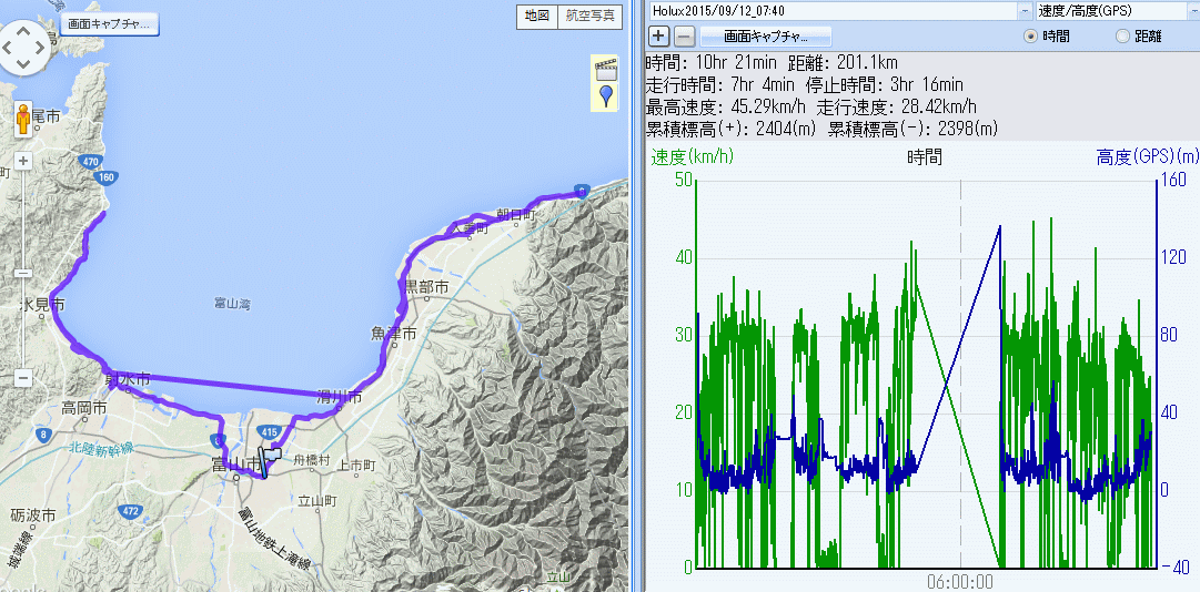 本日のロガーデータ 滑川でバッテリー切れ、伏木まで気付かず。 |