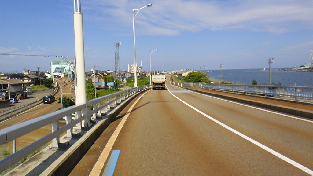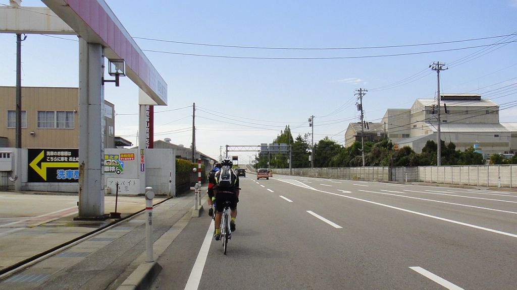 富山→新潟県境市振→石川県境七尾→富山 212km (2015.9.12) 先週は只管「山と渓谷」ばかりであったので今日はイヤと言うほど海を眺めることにする。自宅出発7時40分、ridley orionに比べてaeroadは何て速く進むのだ〜と感心しつつ、浜黒崎へ北上。県道1号を東へ。ずっと天気が悪かったので立山連峰を観るのもひさしぶり。セミの声がすっかり減って、モズの高鳴きも始まり秋本番。朝は涼しくてランナー多し。無風の蜃気楼ロードは最高、体調良く30km/hキープが楽で、この調子ならダブル県境行けるのでは?と市振のあとに七尾と考える。いつもなら黒部で休むが今日は入善の高瀬湧水でボトルに水を入れただけでウィダーインゼリー吸いながら進む。後立山連峰がとても美しい。いつもは避ける入善市街経由にしたのが良くなかったか、フロントがパンク、すぐにチューブ交換し、自分の自転車ではCO2ボンベを初めて使用、これは楽珍。とは言えこのタイムロスで七尾行きは少し無理かと諦めかける。朝日町近くになると向かい風に、これは帰路は追い風(笑)。市振道の駅で遅い朝食。コラテック乗りの若者と会話、何と金沢→東京を移動中で徹夜走行のつもりとのこと。バックパック背負ってでは少々無理かなと想像。おまけに親不知より危険なR148を行く予定とのことで、R18への変更を勧めた。自分も負けずに七尾を目指そう。 帰路は追い風有り難し。入善の農道は豊作の稲が金色の絨毯となり、青空とのコントラストが涙物、今日はサイクリング日和で何人ものローディーとすれ違う度に挨拶、皆笑顔で返してくれ気持ち良し。先は長いので魚の駅生地で休憩、白地に赤のジャージの女性が多い集団に遭遇、初めて見る団体で目礼すれど無視され、ぬーーーおいおい。須坂の果実屋さんにリンゴを頂き、気を取り直す(笑)。今日は遠慮なくタダでご馳走になります、ありがとう。生地から石田まで道でない海岸を通り、空に鳥の様な形の雲が自分と同じ進行方向に向いてる様で何とも爽やか。再び蜃気楼ロードへ。海は霞んで目指す石川県境は見えず。疲労感少々で浜黒崎の自転車道を20km/h程度で休憩的走行、途中ジョギング中のいたち川RCのTTさんこと刀根さんと遭遇、懐かしや。どこで休憩するか思案しつついつの間にやら千原崎交差点、長野から氷見に向けて走行中のお二人と一緒になる。なかなか良い速度なので一寸一緒に走るも彼らは湾岸の青線通りに行くとのことで草島でお別れ、時計見れば13時半、これは全力で行けば13時44分の渡船に間に合うかもでチャレンジ、乗り場に付けば丁度「かいりゅう」がやってきたぜ〜。海王丸パークで写真一枚撮影後、空腹を感じ昼の補給場所を思案、食堂でゆっくり休むと帰る時間が遅くなりそうで伏木国分のポプラに決定。小さなバナナ6本、オレンジジュース、水2L購入。GPSロガーが今日もバッテリー切れ、単三も購入。バナナ3本は背中に入れて14時半出発。 四方〜堀岡の全力走が効いて脚がそれなりにへばり始め、雨晴からの向かい風、阿尾以降の小さなアップダウンがきつい。夏は賑わっていた小境海岸も静か、九殿浜の坂を越えれば残り4q、民宿はしもと&ゆうなぎを通過し、15時半に県境到着。写真撮ってすぐに折り返す。さあ残り50q、追い風が助かるが、硬いaeroadで150qを走行すると尻が痛くてたまらない。阿尾デイリーで最後の補給、オレンジジュース買って残り3本のバナナを流し込む。休憩中の地元氷見のローディと会話少々、碁石ヶ峰に上って来られたとのこと。自分は3年前に原山峠は越えたが碁石ヶ峰は行ったことなし、まだまだ走っていないコースは山ほどある。残り40qは渡船休憩だけで十分、目標18時自宅着で17時7分の渡船に合わせ阿尾出発。雨晴でツールドのとの注意看板を見つける。もう来週である。一年前は勝手に「ツールド加越」と称して三日間走りまくったのを思い出す。渡船出発5分前に越ノ潟着、堀岡で生地で無視された団体が船を待っていた〜、何だかなーで今度は目も会わさず、ランナーもローディも人数多過ぎると邪魔臭いだけやね(笑)。予定通り18時ジャストに帰宅。長い1日だった〜。