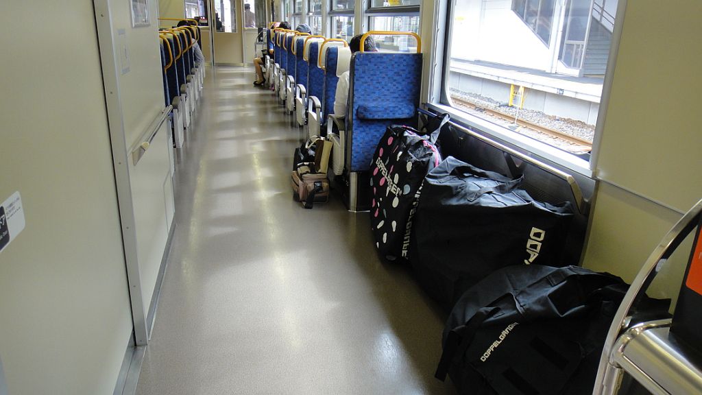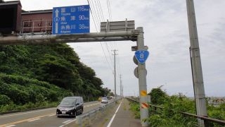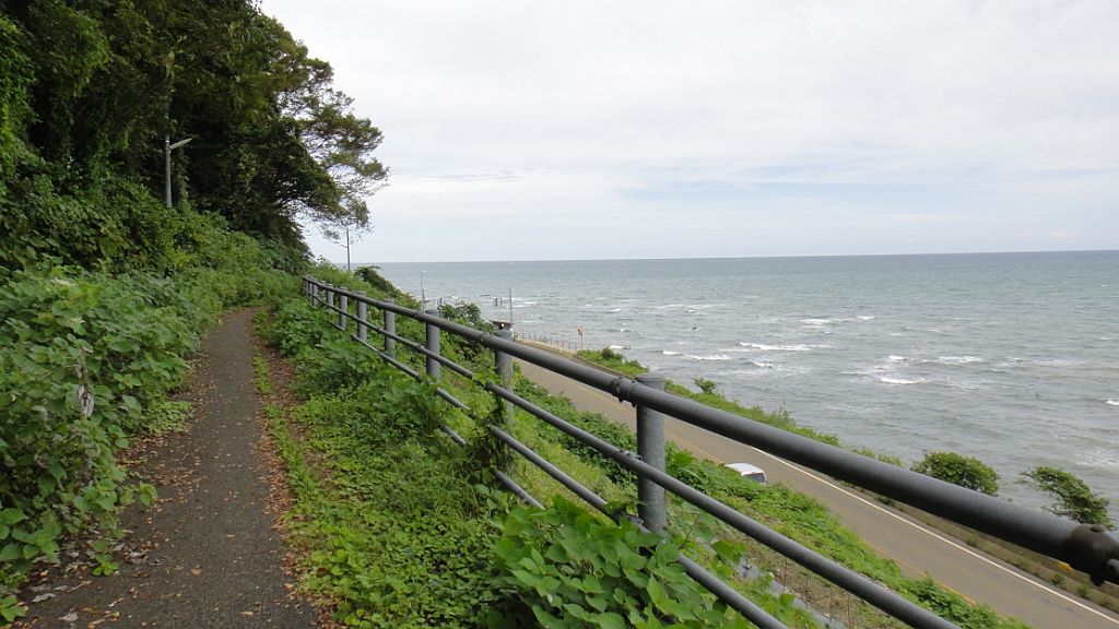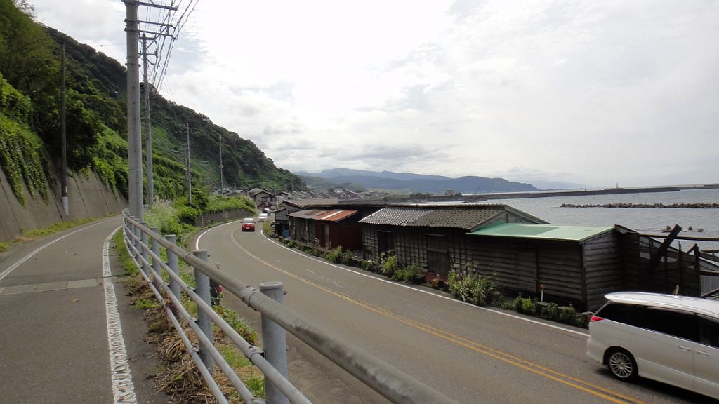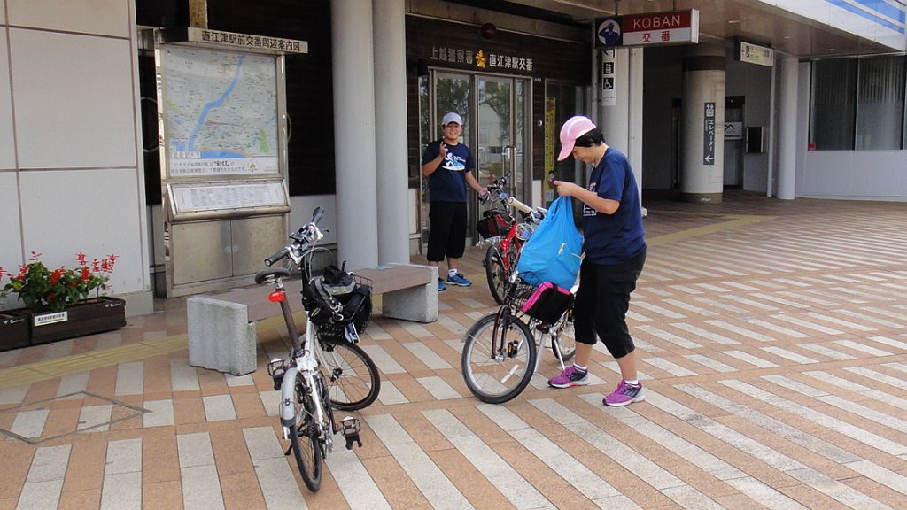 越後トキメキ鉄道で輪行 直江津→糸魚川 久比岐自転車道ポタ 44km (2015.9.21) いつか家族で走ろうと思っていた久比岐自転車道ポタリングようやく実行。自宅発8時半、糸魚川駅でDAHON3台降ろして、土日祝は糸魚川駅前の銀行駐車場が無料開放で第四銀行に駐車。10時8分の直江津行快速で輪行。上越水族館付近の海岸沿いに出てR8との合流点が久比岐自転車道東側の始点。谷浜からR8を渡って山側へ、国道より一段高いので海が良く見えこれは良い。新潟や長野からロードバイクで走った際は自転車道ではなく只管R8だったので新鮮。ロードバイクでも十分走れるし、トンネルも幅があって問題無し。。海テラス名立で昼食のつもりが超絶大混雑で諦め、柿の種で糖分補給。マリンドーム能生まで我慢我慢。こちらも混んでいたが何とか座れて補給兼大休憩。ラーメン+味噌ラーメン×2+ミニカツ丼、さらに用意周到に使い捨てゴム手袋持参(笑)でベニズワイガニ3バイ。結局1時間以上休んで出発。梶屋敷で自転車道は海側堤防沿いとなり、間もなく終点。しばらくR8を走って旧道から糸魚川駅前。44qのなかなか楽しいポタリングであった。