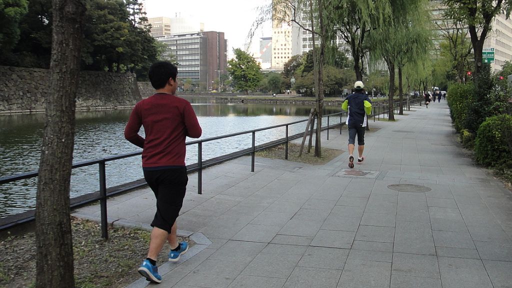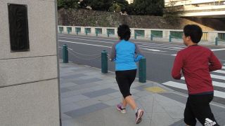 富山マラソンの日に皇居朝ジョグ7.8q (2015.10.03) 東京家族旅行、2日目の朝に皇居一周。妻子も皇居デビューを果たした。新橋のホテルからの距離を入れて7.8q。自分は約4年5か月ぶりの皇居周回だった。皇居を走った際の日記を読み返せば2008年は「ランナーがどんどん増えてて喜ばしい、さらにもっと増えてマラソンが国技になれば」、2009年は「右回りに走るとランナーが増えている様子がまざまざ。何より、若い、お洒落、女の子が多くてこれは良い」などと書いていたが、マナー喚起の看板が設置された2010年は「人が増えると悪人も増える、右回り禁止って何だそれ…」、4年前も「平気で並走する集団が不快、これがブームの弊害」などと。今回は竹橋〜千鳥ヶ淵あたりの多数の「マナー標語」が見苦しかった。やはりブームってロクなことにならんと強く再認識。走る人もお洒落で素敵な服装ばかりで自分的に「普通」のランナーは皆無(笑)、ジャージで走ってるなんて自分くらい。15年前くらいに遡れば、上は白シャツ下は黒の半ズボンのモノトーンランナーばかりだったなー、でもあの頃のランナーは変人は多かったが悪人は居なかったなーと。ロードバイクで周回する人も多数、左折信号無視がナンダカネぇ。自転車乗りもランナーと同じで増えるとマナー悪い(マナーどころかルール違反だ)のが増える。 |