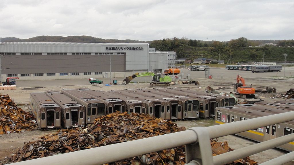 電車やバスの火葬場 総武線?メトロ?と、奥はゆりかもめ?かどこかの新交通