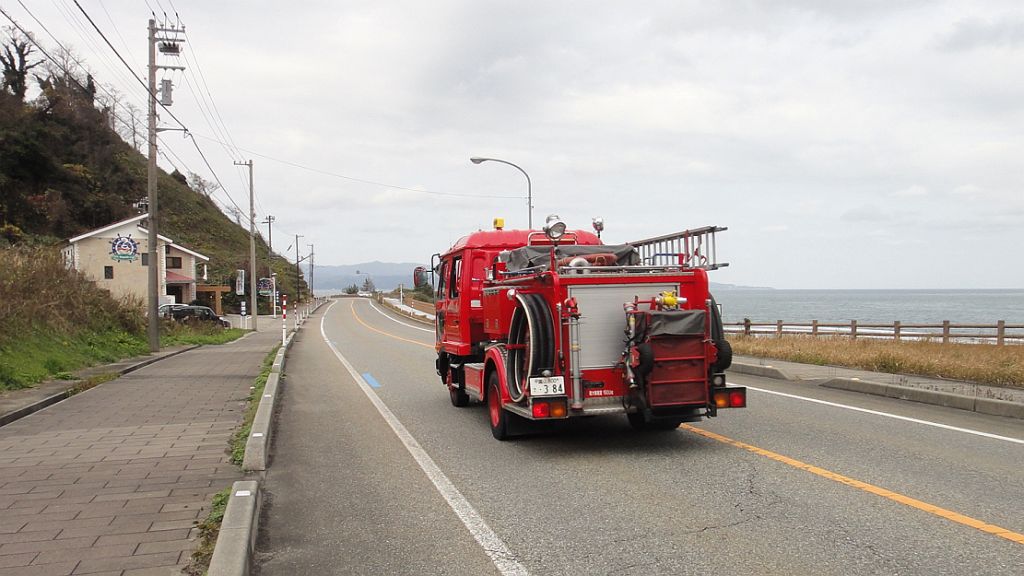 雨晴駐車場で火事騒ぎ 消防車2台、救急車、パトカーが出動