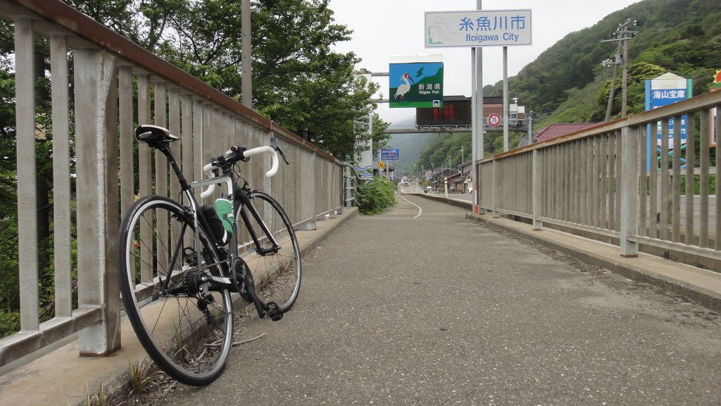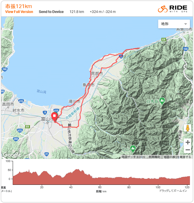 市振 120km (2016.05.14) トライアスロン横浜大会女子のLIVE、上田藍ちゃんが見事な3位、もう32歳になったのね。で、出発12時40分と遅くなった。いつも通り富立大橋から東へ、水田はほぼ田植えが終わり、例年より早い麦秋。上市からは県道3より1本西側の農道で北上、かつてはこの道が定番だった。きつい向かい風で県境まで行く気力が時々萎えそうになりつつ、桜井高校近くの711で休憩。今日は饅頭2個バナナ1本を背負っており、オレンジジュース108円のみ購入+饅頭1個補給。 入善朝日と向かい風我慢我慢で県境到着15時45分、新潟の地面踏んでバナナと水を補給し折り返す。帰路は強烈な追い風天国、向かい風に耐えたご褒美でビュンビュン進む。気持ちE! 魚の駅生地でトイレ休憩。追い風は魚津まで続き、滑川から水橋までは真横からの北風、浜黒崎から家まで最後の追い風。自宅着17時50分、このルート最速記録かとロガーをPCに接続…あれまデータぶっとび、アフリカ大陸やギニア湾を走ってるし…しかも2021年ってBKTFですか。 ![]() ルートラボ終了のためridewithGPSに移行 また手入力。本日もロガー大暴走、自分はアフリカ大陸やギニア湾に居たらしい(笑)、もう買い替えようか。 |