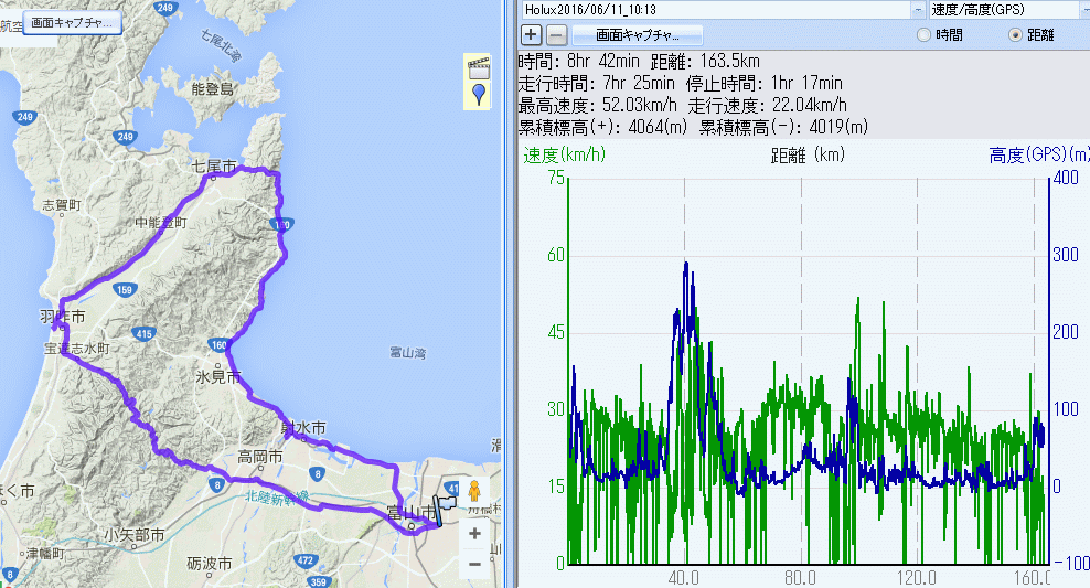 本日のロガーデータ 今日はロガーの携帯方法変更、完璧に取れた ![]() ルートラボ終了のためridewithGPSに移行 |