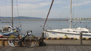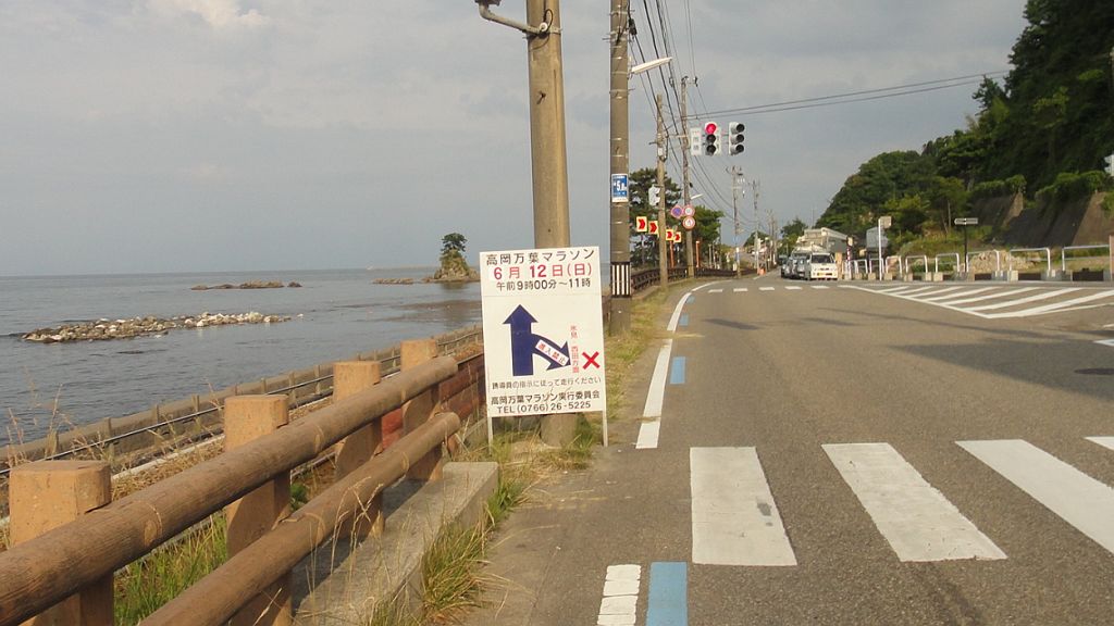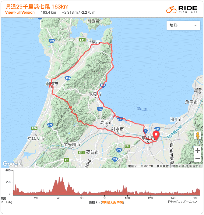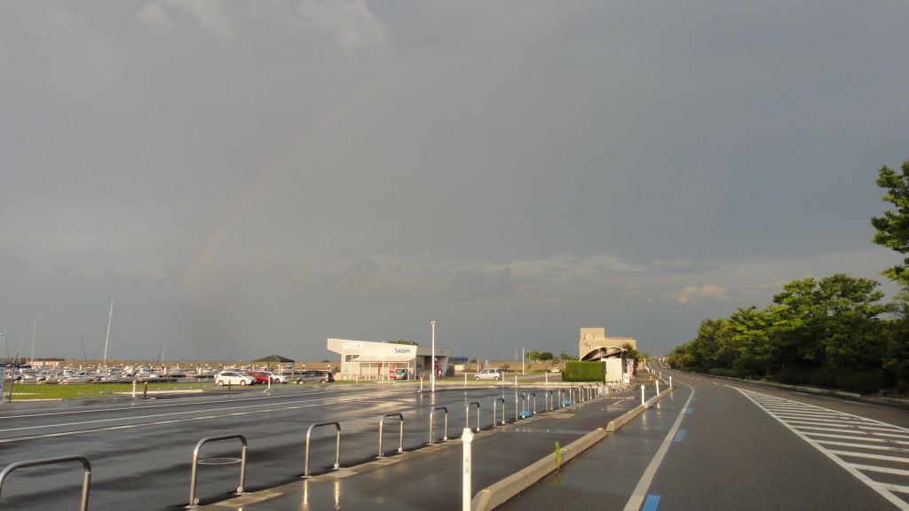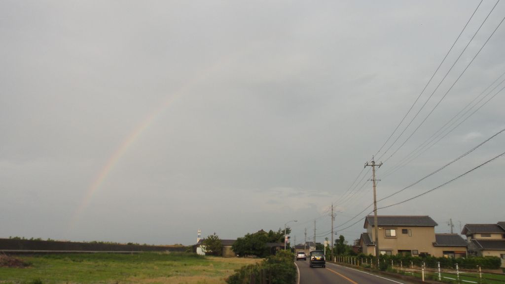 県道29 千里浜七尾 163km (2016.6.11) 2週間ぶりのライド。10時半に出発。年に一度は走りたい県道29へ、この道は三年前の落車のおかげで安全走行の「戒めの道」でもある。西に向かう定番経路で高岡へ、国吉のローソンで最初の休憩。広谷川沿いの県道29に取り付く、上り+向かい風、今年初めてのオニヤンマえらい早い。例年は坂道とロング走で5月半ばには自転車の身体がある程度出来上がっていたが、今年は肩の負傷が長引き走れておらず、案の上ヒルクライムがつらかった。ウグイスとホトトギス大合唱聞きつつも赤毛までの三連発の坂でもう脚に来て県境を越える頃にはもうヘロヘロ。羽咋駅経由で少々遠回りしたが千里浜でイカダンゴ、どこかのクラブのイベントなのか大勢のローディとテントに構えるスタッフ。女性も多いな。視線が何度か絡んだけど一言も交わさず、サークルKに移動し再補給。 猫の目交差点から県道2号、追い風は有り難いが気温高く身体がヒート、我慢我慢で七尾港、極楽トンボ号の前で休憩、最後の711で給水。今日は崎山半島を回る気力体力そして時間もなく峠に取り付く、やはり例年比でギヤ1枚分の体力不足…いやそれとも昨日一昨日で30q近くもジョグったからかな(笑)。富山湾側に出て阿尾まで一気に。県境や民宿夕なぎを過ぎつつ思いは来週の富山湾岸ウルトラマラニック、自転車200qにするかラン30qにするか…天気次第。阿尾ディリー手前に同じジャージ着た集団、RinRinClubインリンクラブ? 氷見からはお尻の痛みとの闘い。パワーも出なくなり、渡船の時間を考える気力もなくなる。新湊に入ると雨!おいおい降水確率0%だった様な。富山方向に黒い雲で心配したが、渡船を降りる頃には雨が上がり虹が出た。新湊から四方までずっと虹を観ながらのライド、尻も筋肉も痛いがご機嫌。19時前に帰着、今期最長距離&最高の疲労。