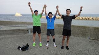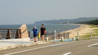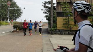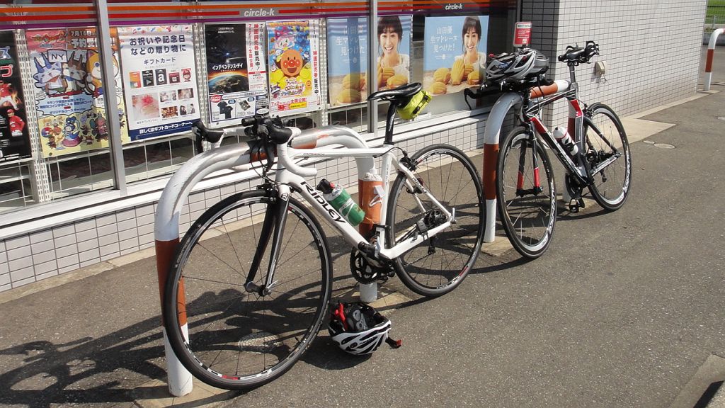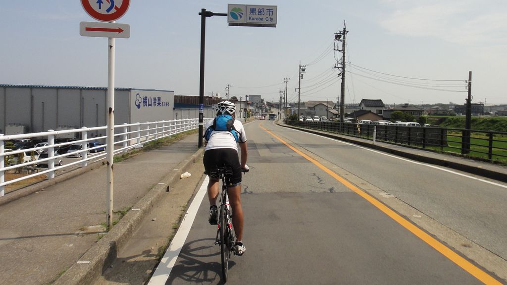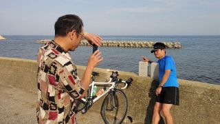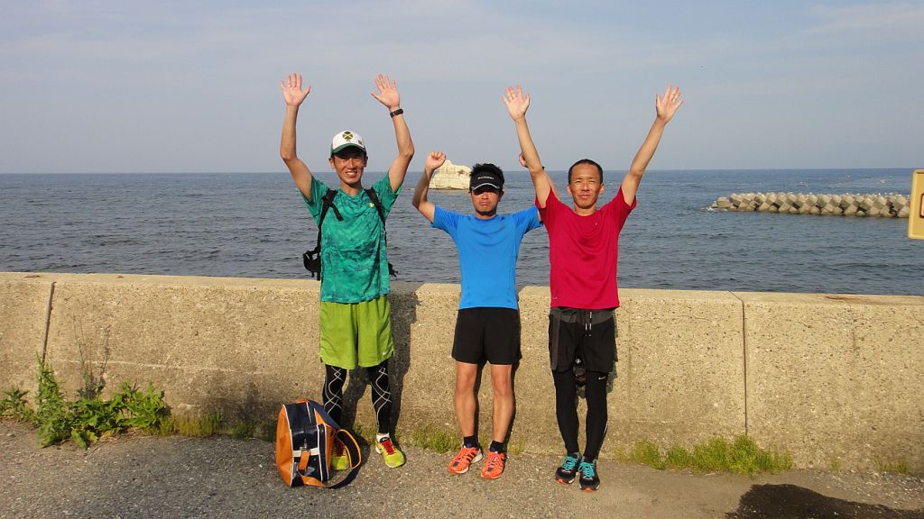 第3回富山湾岸往還200qサイクリング 202km (2015.6.20) 今年もいたち川RC主催・第8回富山湾岸ウルトラマラニック併催「第3回富山湾岸往還200qサイクリング」を勝手に名乗って、一昨年、昨年に続き富山湾岸200qを往復ライド、これまで単独走行ばかりであったが、今回は知性派アイアンマンKMさんがご一緒下さることになった。自宅4時半出発、5時半過ぎにゆうなぎ着、宿のネコが出迎えてくれる今年は愛想良し。今日は雨の心配は無いが好天で高温の予想。今年も水蒸気で対岸はまったく見えず。数分後KMさん到着、ご準備にまだ時間掛かりそうだったので独りで県境まで往復、とりあえず石川県の地面踏んでからスタートしたい変なこだわり。 6時過ぎに夕なぎ出発。KMさんの曳きがいきなり強力で九殿浜に達する前に乳酸を感じる。阿尾で先頭交代、どうやらKMさんが先頭だと自分の1割増しの速度か、自転車(これまたスゴイSPEC)の性能以前に人間の性能が違いマス。今回は朝が弱い西風で阿尾まで向かい風そこから追い風、復路は風向きが若干北寄りに変わり、黒部から滑川が追い風、氷見が向い風となった。休憩&補給は、県営渡船、滑川サークルK、入善の高瀬湧水、道の駅市振(早い昼食10時40分)、魚の駅生地、あいの風プロムナード降りた西側自販機、阿尾ディリ―。今回は出発が昨年より早く2台で曳っ張り合えたので速かったが、宮崎駅近くでパンク一回と渡船時間待ちがあり想定よりは遅くなった。ランナーに追い付いたのは阿尾デイリー。以降はのんびり応援しつつゆっくり走った。 昨年同様、日帰り参加が半数以上とやや残念だが仕方なし。ゴール後は今年も民宿ゆうなぎの魚づくしを堪能、しばらく魚はいらないと思えるほど食べまくった。浜黒崎でニイニイゼミの声、今年は1週間ほど季節が早い。とは言え、伏木の保育園では七夕飾りのイベント、やはり夏なのである。