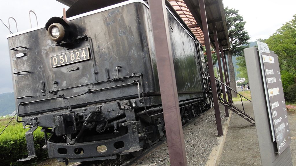 湖畔に2両あるデゴイチ、岡谷のはD51-349