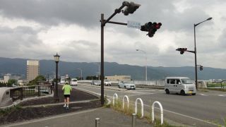 SUWAガラスの里前、岡谷市から諏訪市へ