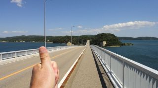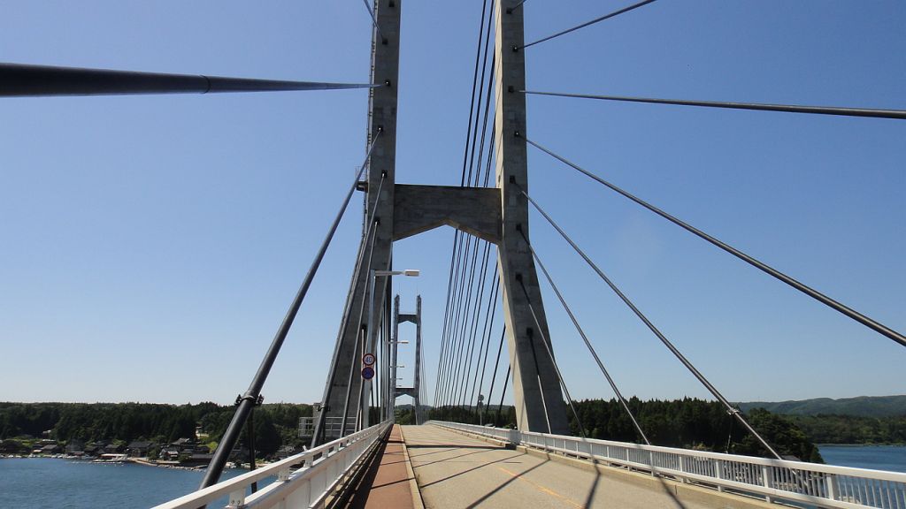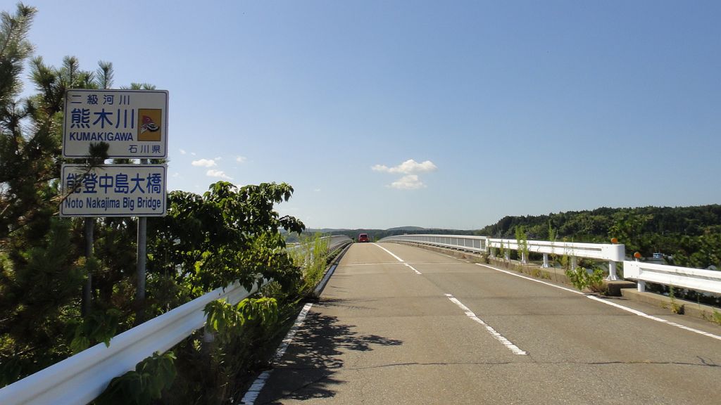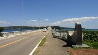 能登島大橋に取り付く