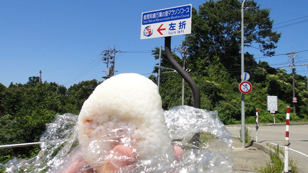 半ノ浦への交差点で2度目のオニギリ補給、背中が軽くなった