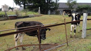 ゴール直前、朝会った牛たちは牛舎の中だった