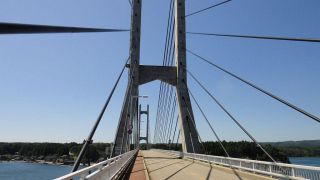 台風通過で風が強かったが橋は両方通行可