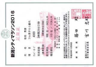 5年ぶり15回目のフルマラソン、第34回新潟シティマラソン 2016年10月 2日 ランナーとしての復活フルマラソン、5年ぶりなので記録。大会前日土曜は4時起床、近所にできた吉野家で納豆超食。家内に地鉄東新庄駅まで送ってもらい富山駅へ。9:45発はくたか+上越妙高から特急しらゆきで新潟へ。ホテルに荷物を預け、新潟駅の天地豊作で昼食、シャトルバスで前日受付。古町に移動、秋のどんどんで賑やか…懐かしみつつぶらぶら。はり糸でカステラ。新潟日報メディアシップ最上階に上がり景色を楽しむ。ホテルにチェックイン、ゼッケン付けたり明日の準備。朝日湯入湯後、万代バスセンター立ち喰いコーナーのきつねそば、イタリアンのテイクアウト、ホテルに戻り、シューズに防水対策施しつつ就寝。 大会当日も4時起床、今日も酷い雨、松屋の牛めしで朝食、ホテルに戻り帰宅準備。シャトルバスで会場へ。スタート前に雨が弱くなりQちゃんのトーク後に号砲。とりあえずプラン通りキロ4分40秒で走り抜くべくゆったりとスタート。雨とは言え景色を楽しみつつ余裕も感じ、後半上げれるカモと妄想していたが、折り返し直後の新川漁港から身体が痺れだし、下腹部も冷えて便意(大)ももよおしスローダウン、ジョギング大会状態。がまんがまんで進むもペースは落ちゆくまま…残り2qでこのままでは3時間半切れないと慌ててペース調整、何とかかんとか29分台でゴール。 レース後はレンタル自転車、昨日と同じく朝日湯入湯、万代の青島ラーメンで昼食、朱鷺メッセ最上階で景色堪能、伊勢丹で土産、駅前で自転車返却、ホテルに寄って荷物回収。帰りも特急しらゆき+北陸新幹線はくたか。酷い筋肉痛と共に帰宅。今回コンデジ忘れて旧式ガラケーと激安スマホで撮影。 |