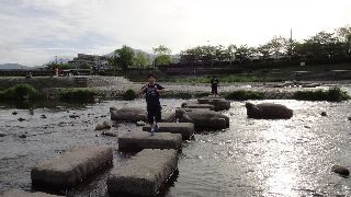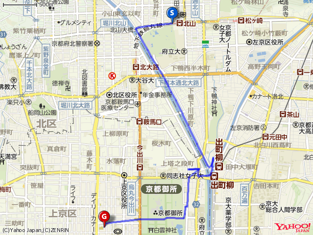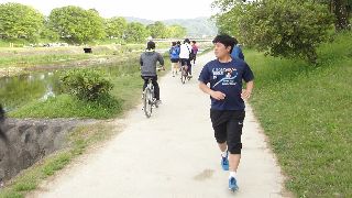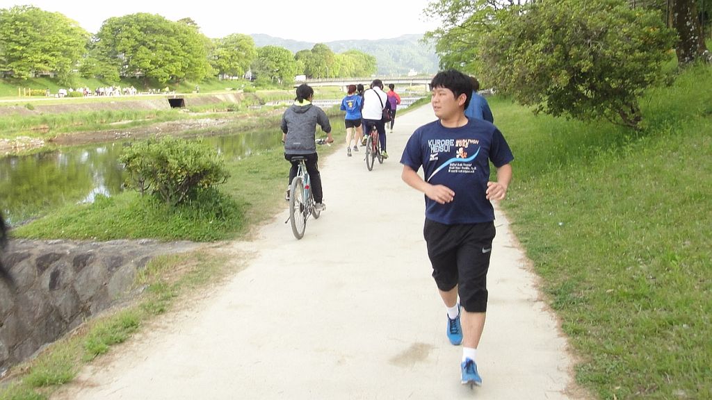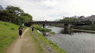 京都・かも川ランニングクラブ2017 2017年5月5日 1年ぶりの京都、記録を振り返るとゴールデンウィークは9年連続の京都行きで毎年2日目朝に走っている。2011年からは7年連続妻子と一緒にジョグしている。今回は事前計画無しで朝起きてルート決定、ホテルから今出川まで準備運動、地下鉄で北山まで移動し、植物園前スタート、北山大橋から賀茂川に入り、左岸をジョグ、上賀茂神社を鳥居の外から参拝、ここ数年定番化している出町ふたばでちまきと豆餅買って御苑を横断してホテルに戻った。ホテル近くで子どもが転倒、胸を強打ししばらく息が出来ず、右ひざに酷い擦り傷、右ひじも…大事は無かったが相当に痛そうで可哀想だった。 < 本日の走行 by ルートラボ 地下鉄乗車前を加えて走行距離約8q