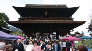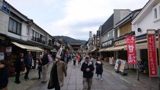 ▼長野市内観光とマラソン受付 駅構内はマラソン参加者を歓迎する催しで賑やかだった。とにかくまずは荷物預けるべくホテルへ、12時前でもチェックインOKで部屋に入れて助かった。150円のぐるりんバスに乗り善光寺大門前へ。びんずる様に不調箇所をお渡しし、御本尊には明日の完走祈願。八幡屋磯五郎でイヤー缶の特急あずさと本店限定牛に引かれて缶。門前の竹風堂で昼食と思えば本日貸切残念。10年前と8年前にも食べた、ぱてぃお大門のおやき屋さんで軽く食べることにする。味噌汁が美味い。店長さんには帽子を憶えたので明日は応援して下さるとゼッケンまで聞かれた。権堂ぶらついて、もう少し何かお腹に入れようと、以前から気になっていた「いむらや」で名物のあんかけ焼きそばを注文、しかし自分には味も量も無理だった(涙)。少し歩き疲れたので駅構内のBECKSコーヒーで休憩、ちょうど窓の下に北陸新幹線、あれだと富山まで45分かと笑う。駅東口からシャトルバス(片道200円)でマラソン受付会場へ、売店多数あるも物欲はさほど刺激されず、試してみたかったマグオンを2本だけ買ってみた。 シャトルバスで再び駅に戻り、今日の内に土産をで大混雑のMIDORIを避け東急百貨店に行って正解、家内の好物の飯田屋の飴せんべいに明日の直前食用に開運堂のピケニケを買えた。ホテルに戻り16時〜の大浴場に行けば、既に先客3名、皆ランナー体型で自分のお腹の贅肉が恥ずかしい。部屋でウェアにゼッケン付けたり荷物分けたりと準備だらだら、あっと言う間に夕方に。晩飯は駅前の油やで盛り蕎麦とヒレカツ丼、まずまず美味かった。店を出ると雨が本降りに。ホテルに戻ってテレビ入れれば映画ロッキー、ついつい最後まで観てしまい22時半就寝。 | ||