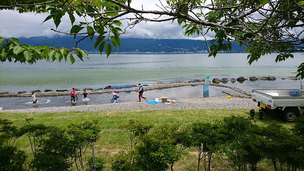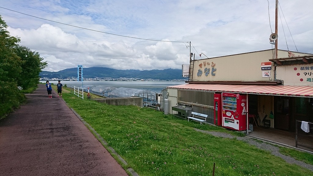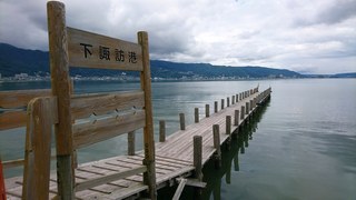6年前に出来た下諏訪港の看板、7年前は桟橋だけだった