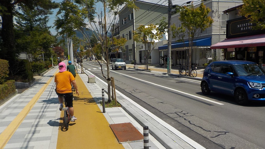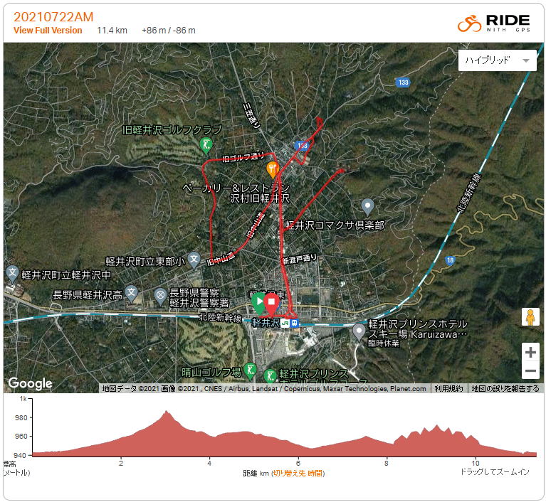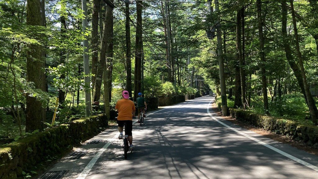 軽井沢市街ポタ&Walk 10q 2021年7月22日 海の日連休恒例の信州方面家族旅行、マイカーがステップワゴンだった3年前までは自転車車載は茶飯事だったが、車をシャトルに変えてからは宿泊旅行では初めて。軽井沢自体も自分は36年ぶりなので実質的に妻子とともに初めて。自宅発5時45分頃、軽井沢着10時前、車を駅西側の町営駐車場に停め(ほぼ満車だった)、DAHON3台を車から出し組み立て、駅のおぎのや売店で夕食用釜飯予約してから10時半頃に出発。土地勘も無く見所も理解してないが、軽井沢本通りを旧軽商店街に向け出発、レンタサイクルの店が多い(ここだけサイクリングするなら自転車車載してくる必要は無い)。旧軽ロータリー近くの駐輪場に駐輪、旧軽商店街は緊急事態宣言ってなぁにの密(自分等も密の要因だw)。軽井沢の象徴であるショー記念礼拝堂とショーハウスをとりあえず見学し、ショー通りを歩き、上皇様ご夫妻出会いの場だった軽井沢会テニスコートまで歩く。商店街に戻り徒歩散策終了。ゴルフ通りをメインに自転車で別荘地をポタリング、別荘には高級外車が停まり、想像してたがショッピングや観光的施設に居るのは庶民、別荘に居るのが上流階級であると理解。軽井沢と言う土地がおよそ我が家には縁遠いと言うことがよく分かった。まぁでも別荘地の中の木陰の道は涼しくて気持ち良かった。 翌日は軽井沢から上田まで中山道と北国街道を辿るポタリングを予定しており、軽井沢駅の駐輪場にDAHON3台駐輪。その後この日は、マイカーで白糸の滝や鬼押出し園を巡って北軽井沢で宿泊した。 |