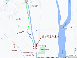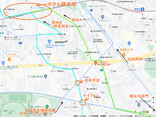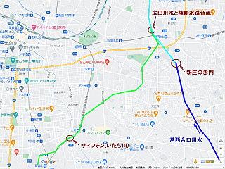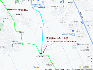 ◆荒川ホタルの用水を荒川から流杉へと遡るマップ((c)googleのマップ使用) |