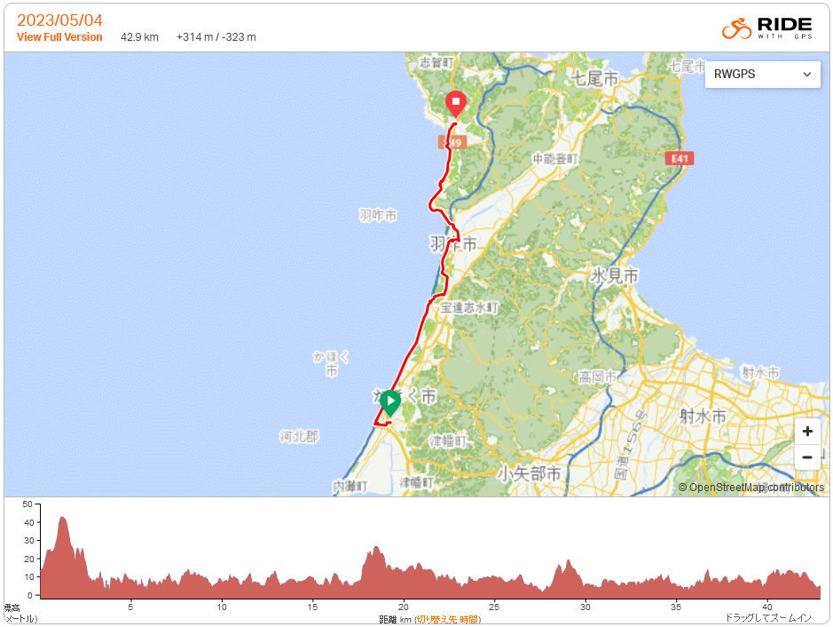 宇野気〜羽咋〜志賀高浜 バス+鉄道の準輪行ポタ 約42q 2023年5月4日