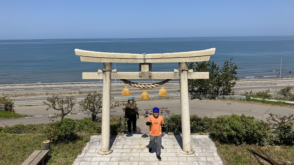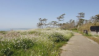930宇野気駅西口出発、砂丘を上る急坂がいきなりきつい。アオキで手指消毒用アルコール購入後、白尾灯台へ…所謂日和山で唐仁屋三郎兵衛の碑があった。恵比寿神社で今日の安全祈願し、里山海道と並走する金沢羽咋自転車道線K326へ。見晴らし良い区間は千里浜へと続く海岸の眺めが爽やか。11km地点の道の駅高松で1回目の休憩、ここまで出会った自転車は5台。一旦休んでの再出発は、コンクリの固い路面や溜まった砂が気になってくる。時々自動車道を左右に潜るトンネルもあり快適とは言えない。なによりGWで交通量が多く車やバイクの走行音が五月蝿くて頭が痛くなってくる。